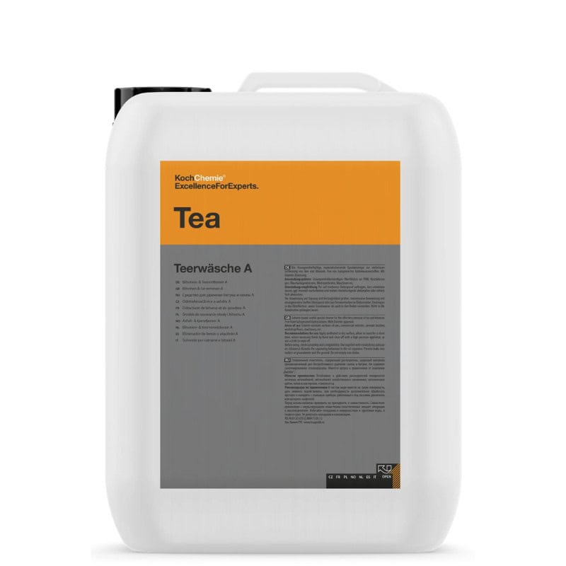 For å gjøre det enkelt er Teerwäsche A det eneste dedikerte produktet for å fjerne asfalt i Koch-Chemie sitt produktsystem. Et annet spesialprodukt som riktignok kan brukes er Orange Power, men det har interiør og limfjerning som hovedfokus. Teerwäsche brukes utynnet, og gjerne på en Solvent 1L pumpekanne. Du trenger ikke bruke Teerwäsche ved hver vask, men når det er behov for å fjerne asfaltflekker/støv.